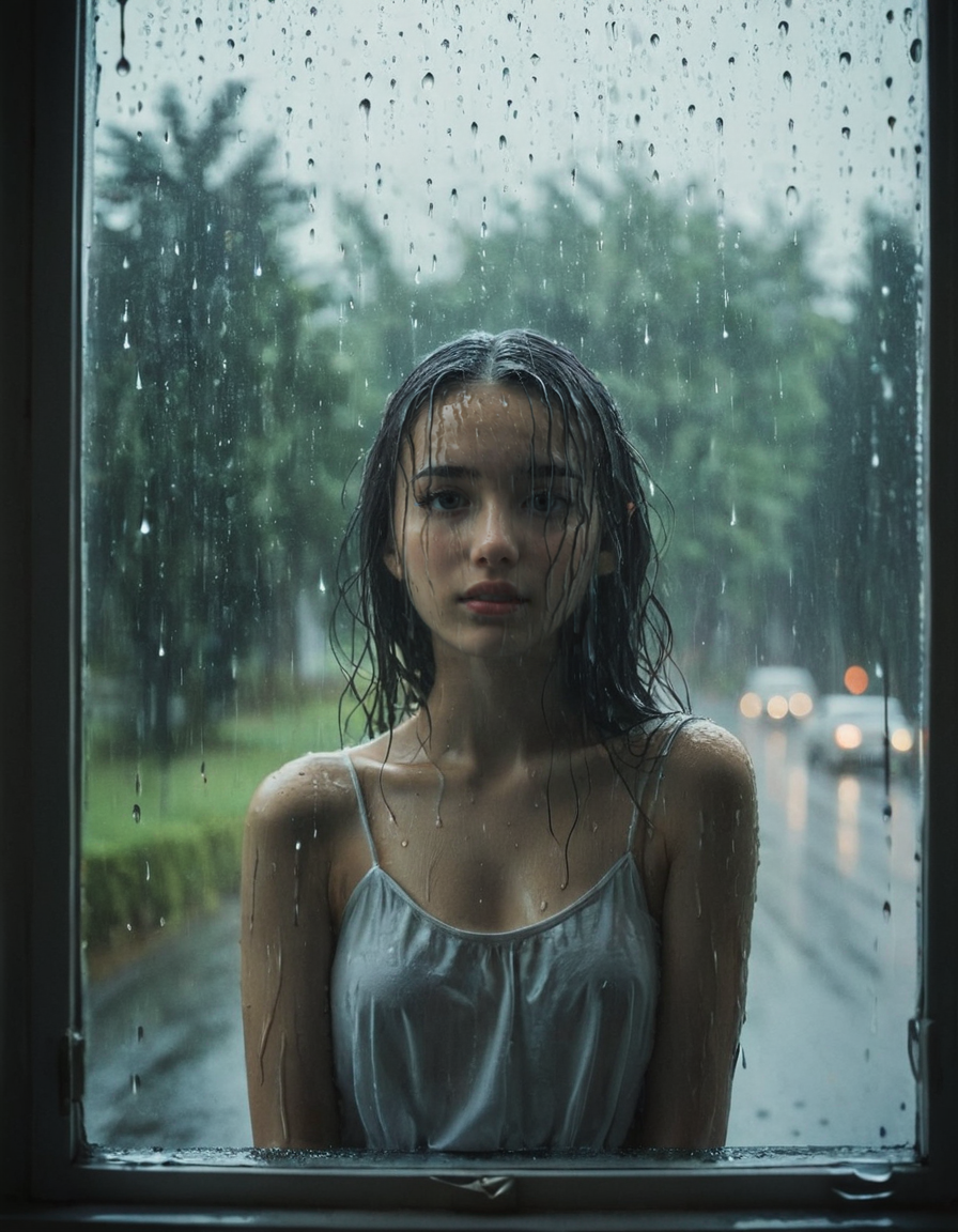 Cute girl behind window, rainy, photography surreal art, blurry, minimalistic <lora:add-detail-xl:1> <lora:Ausum:0.8> ausum style, <lora:Real_Beauty:0.8> real_beauty