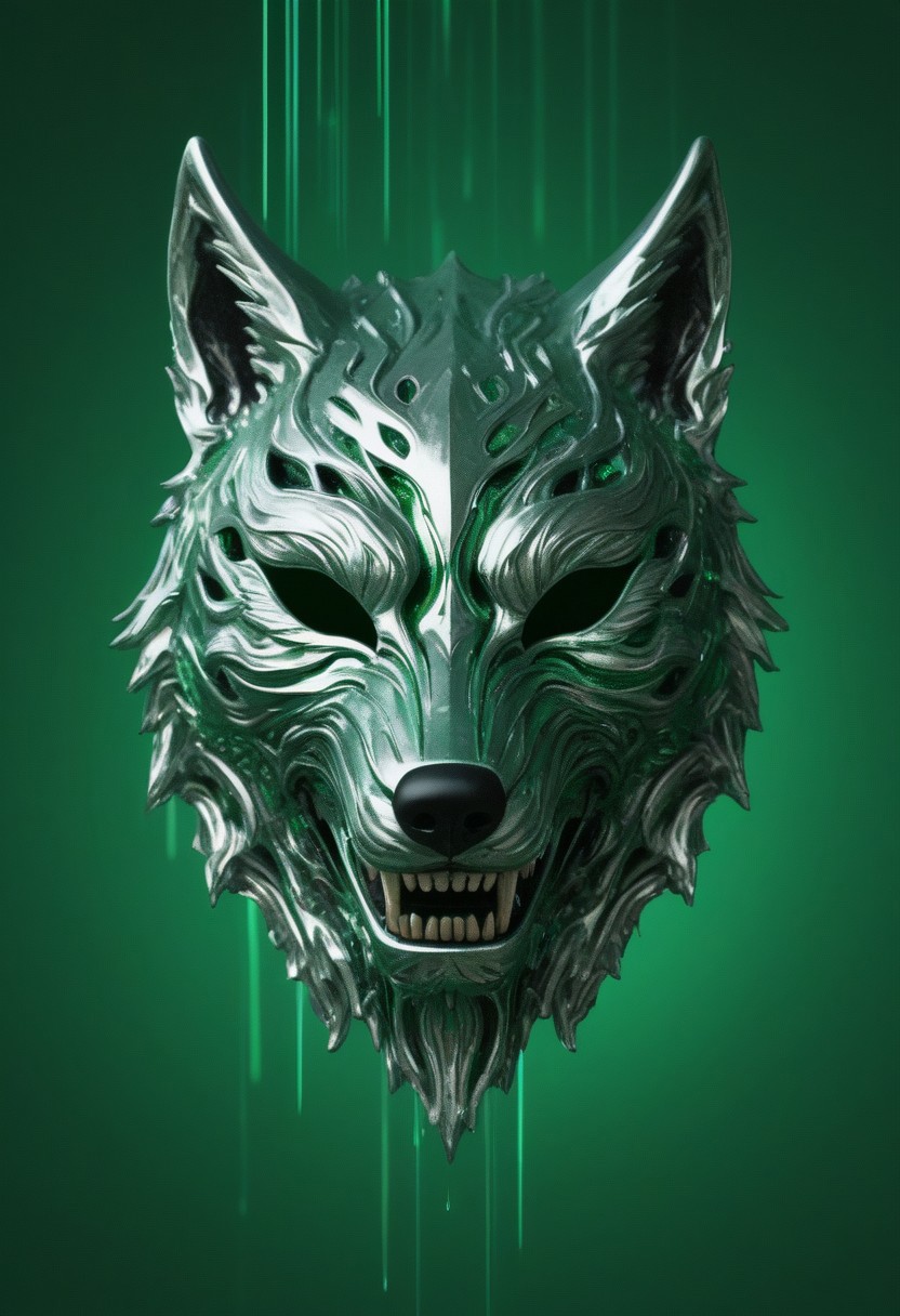 Photograph of a heist mask shaped like a wolf with horror design, metallic green and fluid silver like mercury, minimalistic blurry horror background, horror light <lora:aidmaGlitchStyle-v0.1:0.75> glitch, flickering, digital, glitching <lora:SDXLFaeTastic2400:0.35> <lora:aidma-Image Upgrader-v0.1:0.4>