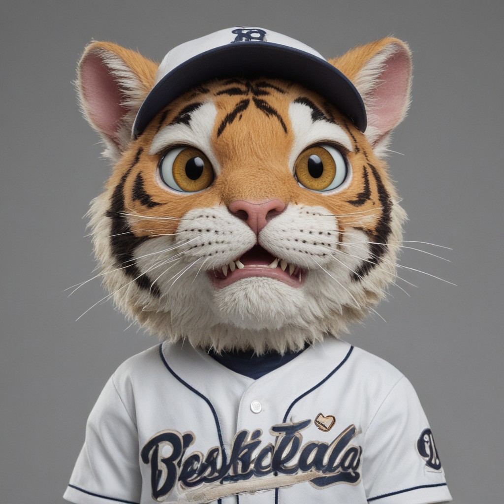 a close up of a feline of a baseball player, anthropomorphic tiger, art jiro matsumoto, by William Mossman, hamster, the creature sells a used car, post-nuclear, kawaii, miserable, listing image, masterful design, 8k, trending on ArtStation