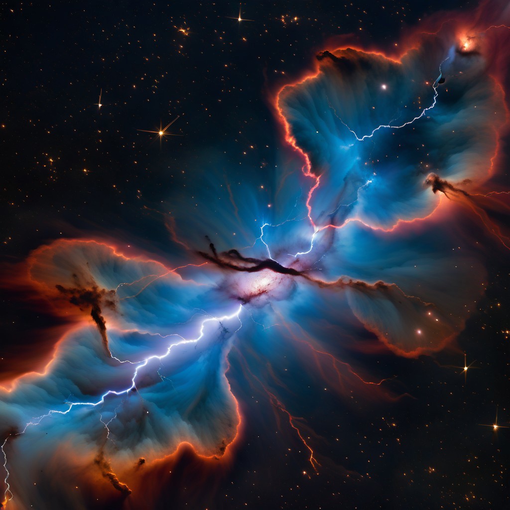 mad-nbla, lightning bolt shaped nebula, ultra realistic, complementing tones