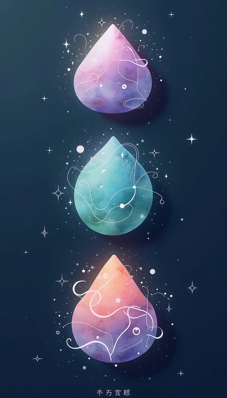 Craft a series of 5 mystical game category icons, drawing inspiration from the playful geometry of Paul Klee and the enigmatic forms of Wilfredo Lam. Position the icons in a gently arcing line against a deep, starry indigo background. Each icon should be a unique, soft-edged shape filled with a gradient of two complementary pastel tones (e.g., lilac fading to mint, pale blue transitioning to blush). Within each shape, illustrate a white, abstract representation of the category using a combination of delicate dots and flowing lines, creating a constellation-like effect. Apply a subtle glass-like reflection to each icon's surface and surround it with a faint, shimmering aura that subtly shifts in color. The overall effect should evoke a sense of ancient wisdom rendered in a modern, ethereal style.
