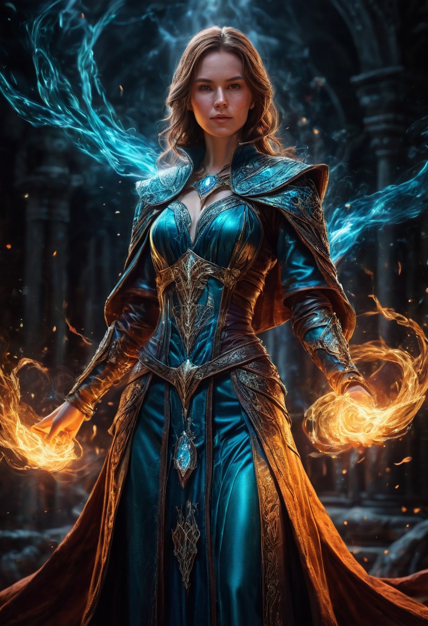 woman, 20 year old, (slender), (magic), spellcaster, battlemage, robes, battle, (dynamic), breathtaking detailed, masterpiece, lovely, charming, awe-inspiring, radiant, magnificent. glossy, award-winning, professional, highly detailed, extremely high-resolution details, photographic, realism pushed to extreme, fine texture, incredibly lifelike, high contrast, well defined