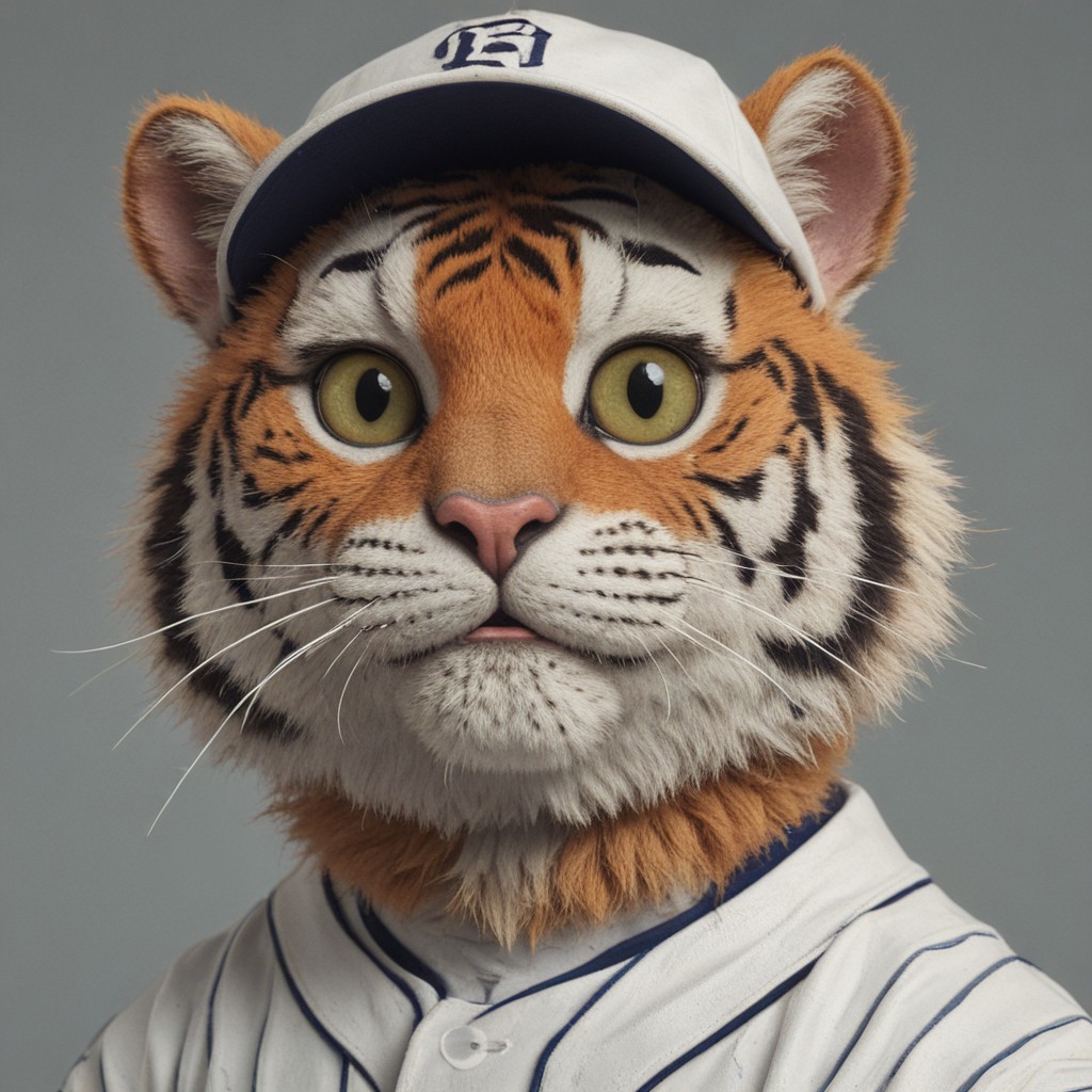 a close up of a feline of a baseball player, anthropomorphic tiger, art jiro matsumoto, by William Mossman, hamster, the creature sells a used car, post-nuclear, kawaii, miserable, listing image, masterful design, 8k, trending on ArtStation