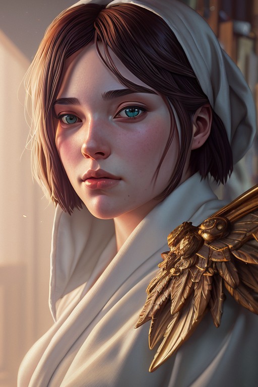 Hyper realistic adult male guardian angel donned in white robes, caught in mid-close-up, surrounded by a detailed and intricate environment, soft light illuminating the scene, combining artistic styles of Greg Rutkowski, Loish, Rhads, Beeple, Makoto Shinkai, Lois Van Baarle, Ilya Kuvshinov, Rossdraws, Tom Bagshaw, and Alphonse Mucha, with, unreal engine, greg rutkowski, loish, rhads, beeple, makoto shinkai and lois van baarle, ilya kuvshinov, rossdraws, tom bagshaw, alphonse mucha, global illumination, detailed and intricate environment
