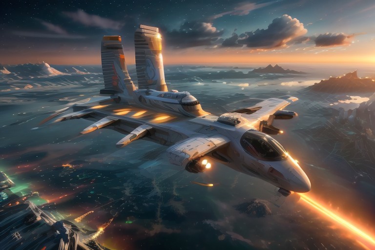 exceptionally detailed concept-art illustration, absurdres, 8k, scifi fantasy. up in the stratosphere, floating cloudcity, sky docks, where ultra-cool trans-atmospheric shuttles called "cutters", are in the midst of landing or taking off. daytime, outdoors, cloudscape, implied scale, implied height, high resolution textures, pastel hues, [orange, pearl white, pink, ochre, onyx, cobalt], neon panel lighting strips, detailed background,