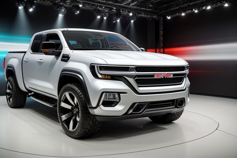 (masterpiece)+, 8k, best quality, ultra-detailed, (high res), cinematic lighting, beautiful lighting, high quality, studio quality, detailed, insanely detailed, extreme detail, refined detail, perfect detail, max detail, smooth lighting, detailed background, hyper detailed body, beautiful lighting, vibrant lighting, global illumination, absurdres, high-res, dynamic lighting, spectral reflections, Futuristic concept car in a studio, pickup truck, futuristic, sci-fi, streamline, rugged, inspired by Chevrolet and GMC, full size pickup, red metallic paint, glowing chrome rims, aggressive looking, <lora:HTTP_20231128195717:1>