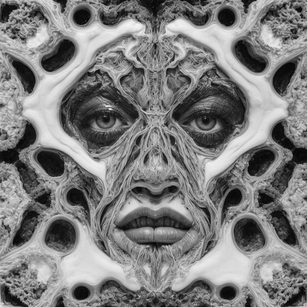 a hyper detailed abstract acrylic portrait of a woman, 3d cross section, deformed forms, monochramatic, shallow depth of field, ink on paper, sunlight, intricate anatomy, thomas desjardins, deijardon,