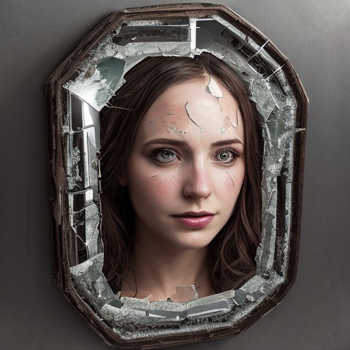 "fantasy goddess of mirrors", reflective, shatter, crash, broken glass, full portrait, finely drawn eyes, 8k resolution
