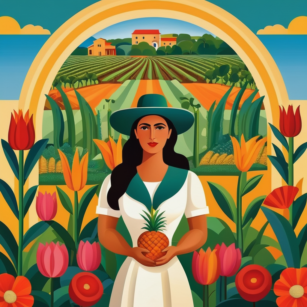 vector art, style of Tarsila do Amaral agricultural industry, flat color