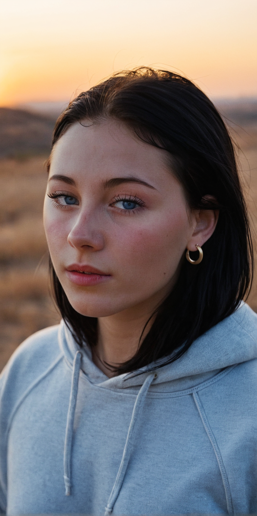 cinematic film still 19 years old, facing the viewer, en face, beautiful face, tanned, make up, blue eyes, grey hoodie, straight long black hair, earrings, pink make up, golden hour, Kodak Portra 400, high-definition, cinematic shot, atmospheric perspective, high-resolution, high-key lighting, lifelike, realistic textures, high clarity <lora:add-detail-xl:1> <lora:NsfwPovAllInOneLoraSdxl-000009:0.5> OverallDetailXL <lora:MJ52_v2.0:0.3> <lora:EldritchCandids1.1.2:0.3> <lora:Lena_Moonlight-000004:0.88> . shallow depth of field, vignette, highly detailed, high budget, bokeh, cinemascope, moody, epic, gorgeous, film grain, grainy