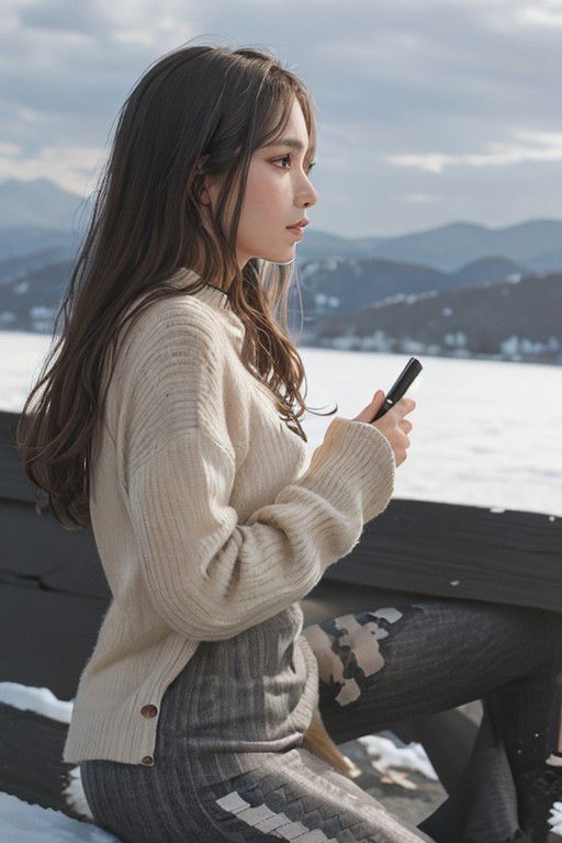 woke,a woman wearing sweater and leggings, mountains, (high key lighting:0.5) <lora:woke:0.9>