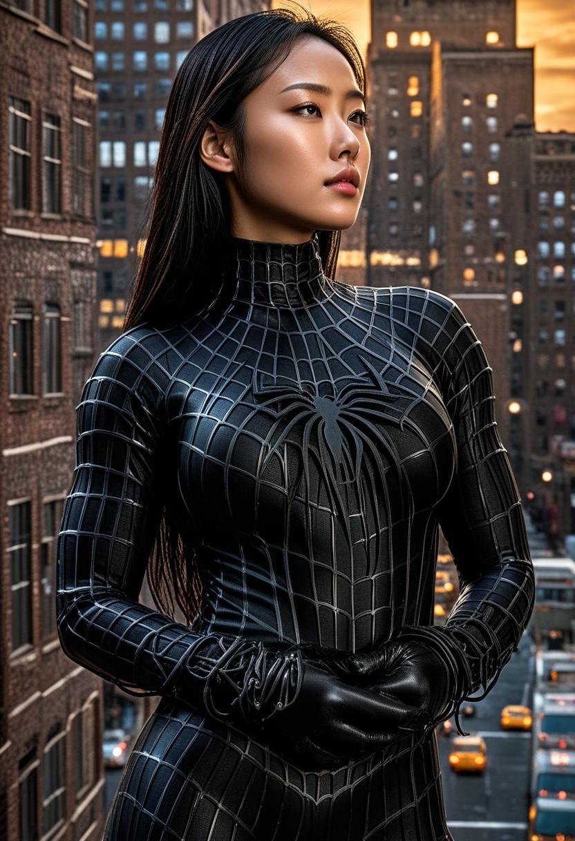 score_9, score_8_up, score_7_up, best quality, realistic, masterpiece, beautiful detail, hyperrealistic, afternoon sky, ((1girl, woman body, big breasts)), amazing detailed full body portrait of a beautiful korean girl, wearing a realistic and highly detailed black raimi spider-man suit, ((huge muscular girl)), professional model wears ultra - detailed black raimi spider - man suit, ultra - detailed and grained black raimi spiderman suit, suit covered entire body and hand, black spiderman gloves, wet, (spread leg), (full body), (dirty skin), close up, octane render, highly detailed, volumetric, dramatic lighting, (highest quality:1.1), (HDR:1.3), (top quality, best quality), realistic, high definition, Expressionism - sharp focus, professional photography, masterpiece, ultra detailed photograph, high quality, 8k,