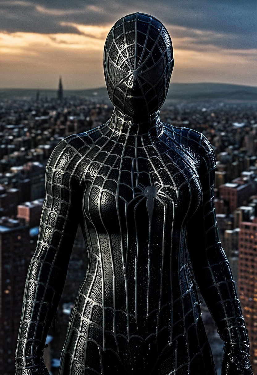 score_9, score_8_up, score_7_up, best quality, realistic, masterpiece, beautiful detail, hyperrealistic, afternoon sky, ((1girl, woman body, big breasts)), amazing detailed full body portrait of a beautiful japanese girl, wearing a realistic and highly detailed black raimi spider-man suit, ((huge muscular girl)), professional model wears ultra - detailed black raimi spider - man suit, ultra - detailed and grained black raimi spiderman suit, suit covered entire body and hand, black spiderman gloves, wet, (wears black spider man mask), (full body), (dirty skin), close up, octane render, highly detailed, volumetric, dramatic lighting, (highest quality:1.1), (HDR:1.3), (top quality, best quality), realistic, high definition, Expressionism - sharp focus, professional photography, masterpiece, ultra detailed photograph, high quality, 8k,