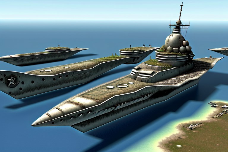 a space pirate battleship among the ruins of an advanced, futuristic city