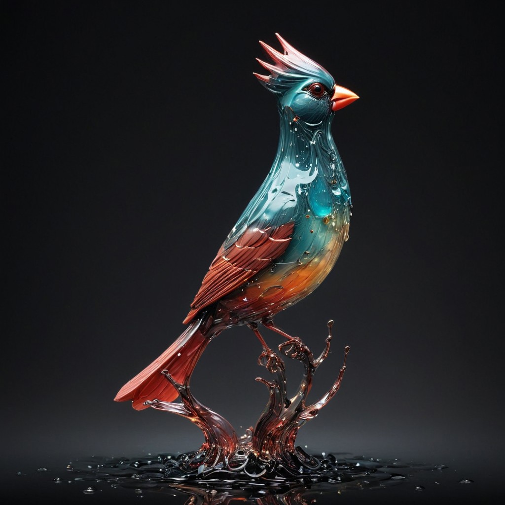 A cardinal bird, incredibly fluid, detailed, 3D fractals, light particles, drops of water, shimmering light, dreamer, surrealist, alcohol ink, smooth, shimmering, dreamy glow, conceptual art by Alberto Seveso, Anna Dittmann, Arthur Rackham, 16k