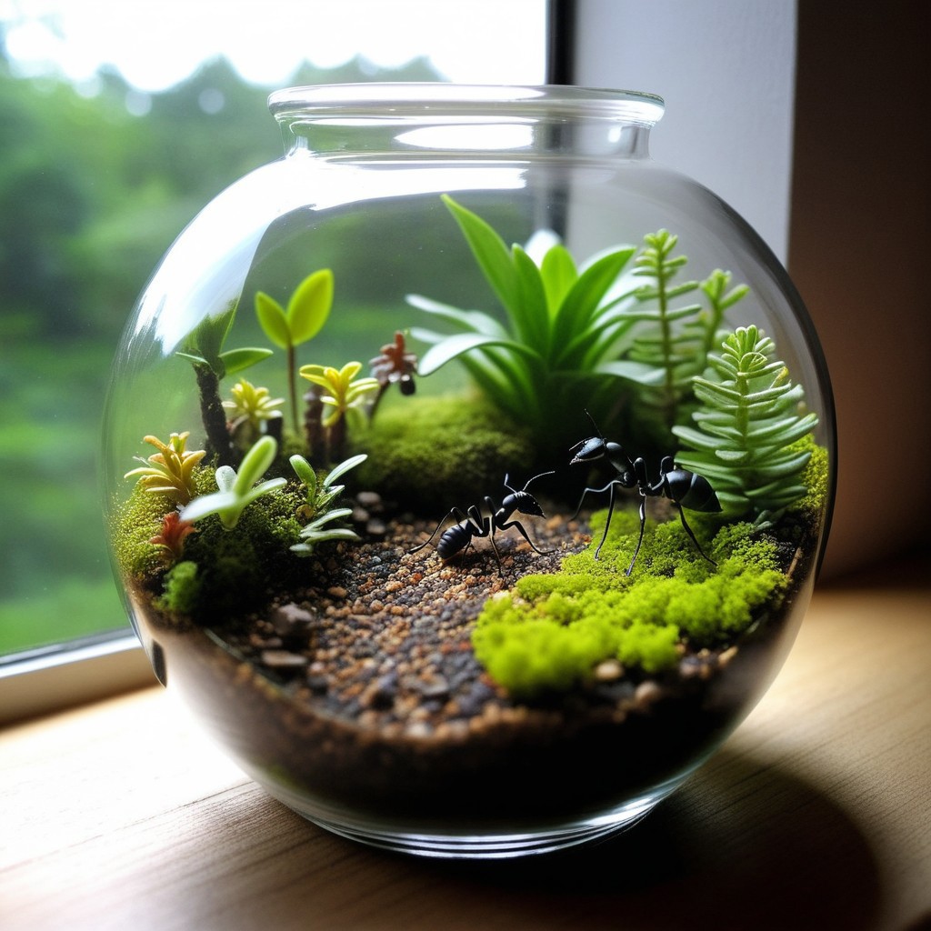 Terrarium Tales: Create miniature worlds in glass terrariums that house tiny civilizations, fantastic ecosystems or landscapes. Black ants have their habitat there.