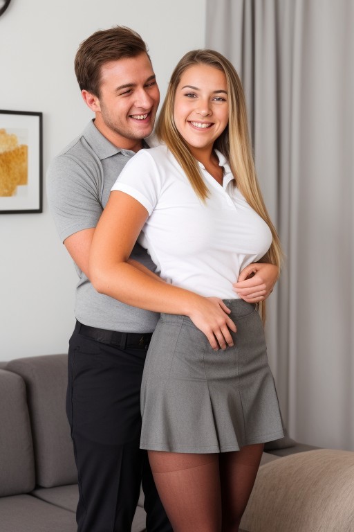 realistic, 8k, score_9, score_8_up, score_7_up, high quality, good skin, high skin texture, hetero, living room, perfect finger, perfect arms, (elder man in pants and poloshirt and grey hair, breast grab, grabbing from behind, groping) (young woman 18yo old, blonde hair and smiling with pantyhose, latex skirt, blonde french braids, lifted shift, flashing breast, ) ,bad-picture-chill-75v