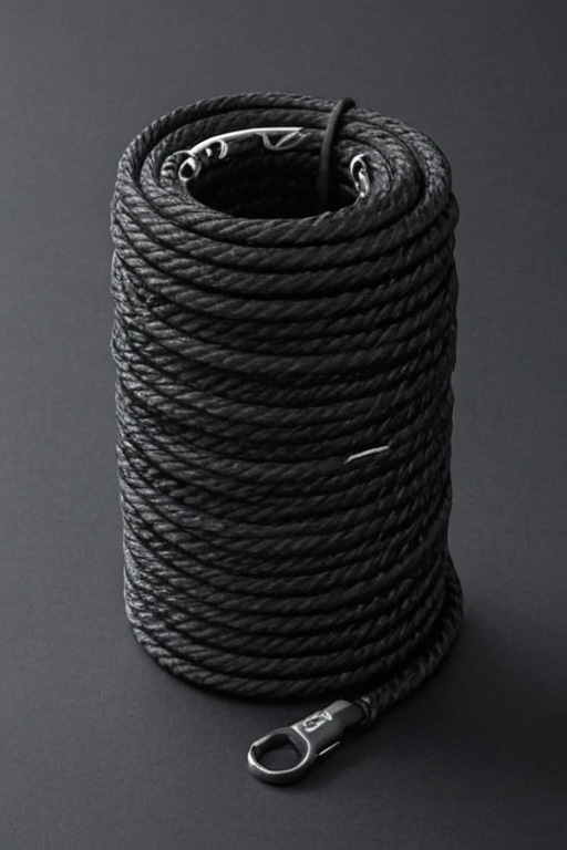 rope for camping in black, ((daniellepik)), ((lemanoosh)), product shot, sleek minimalist futuristic product design <lora:Sleek_Product_Design:1>