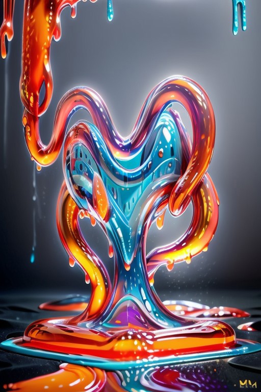 sl1m3d, score_9, score_8_up, score_7_up, high res image, masterpiece, best quality, (slime-morph:1.2), made of slime, exploding, slime explosion, shiny, glossy, wet, simple background, Windy
