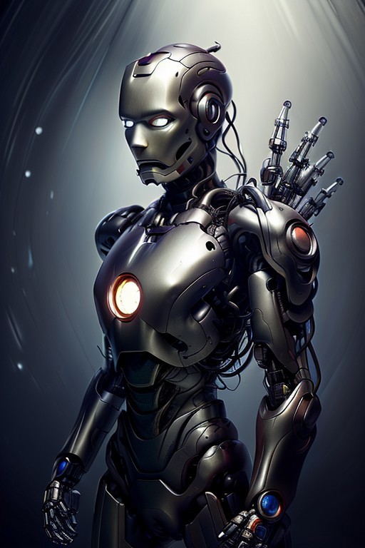 cinematic film still silverpulse, cyborg Iron Man, simple background, high quality, artistic, vibrant colors, detailed textures. futuristic sleek/glossy silver and blue glow, vibrant colors, detailed textures., Concept art, cyborg, background, vintage, modern, SilverPulse, <lora:SilverPulseMorphXL:0.8>, excellent composition, artistic, highly detail, holy, sunny, dynamic dramatic beautiful full taking . shallow depth of field, vignette, highly detailed, high budget, bokeh, cinemascope, moody, epic, gorgeous, film grain, grainy, front view,