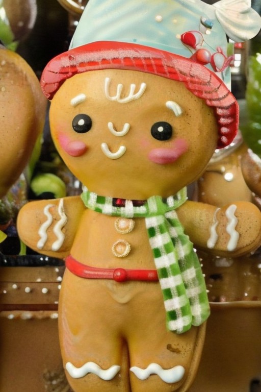 score_9, score_8_up, score_7_up , 1female, 27 years old, solo, close-up portrait, blush, happy, blue eyes, beautiful, mature female, blonde hair ,purple hair, realistic, circlet, necklace, earrings, diabellze, multicolored hair, witch hat, white coat, white bodysuit, multiple belts, extra decorations, cyberpunk, neon room, Gingerbread_Man, food, cookie, food focus, no humans.