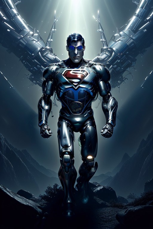 cinematic film still silverpulse, cyborg Superman, Kal-el, 'S' Logo on chest, red cape, simple background, high quality, artistic, vibrant colors, detailed textures. futuristic sleek/glossy silver and blue glow, vibrant colors, detailed textures., Concept art, cyborg, background, vintage, modern, SilverPulse, superman_oc, <lora:SilverPulseMorphXL:0.8>, excellent composition, artistic, highly detail, holy, sunny, dynamic dramatic beautiful full taking . shallow depth of field, vignette, highly detailed, high budget, bokeh, cinemascope, moody, epic, gorgeous, film grain, grainy, front view,