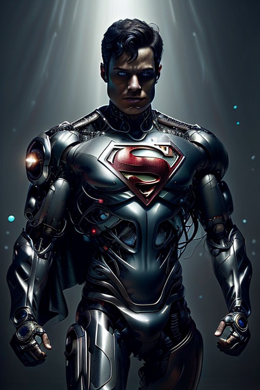 cinematic film still silverpulse, cyborg Superman, Kal-el, 'S' Logo on chest, red cape, simple background, high quality, artistic, vibrant colors, detailed textures. futuristic sleek/glossy silver and blue glow, vibrant colors, detailed textures., Concept art, cyborg, background, vintage, modern, SilverPulse, superman_oc, <lora:SilverPulseMorphXL:0.8>, excellent composition, artistic, highly detail, holy, sunny, dynamic dramatic beautiful full taking . shallow depth of field, vignette, highly detailed, high budget, bokeh, cinemascope, moody, epic, gorgeous, film grain, grainy, front view,