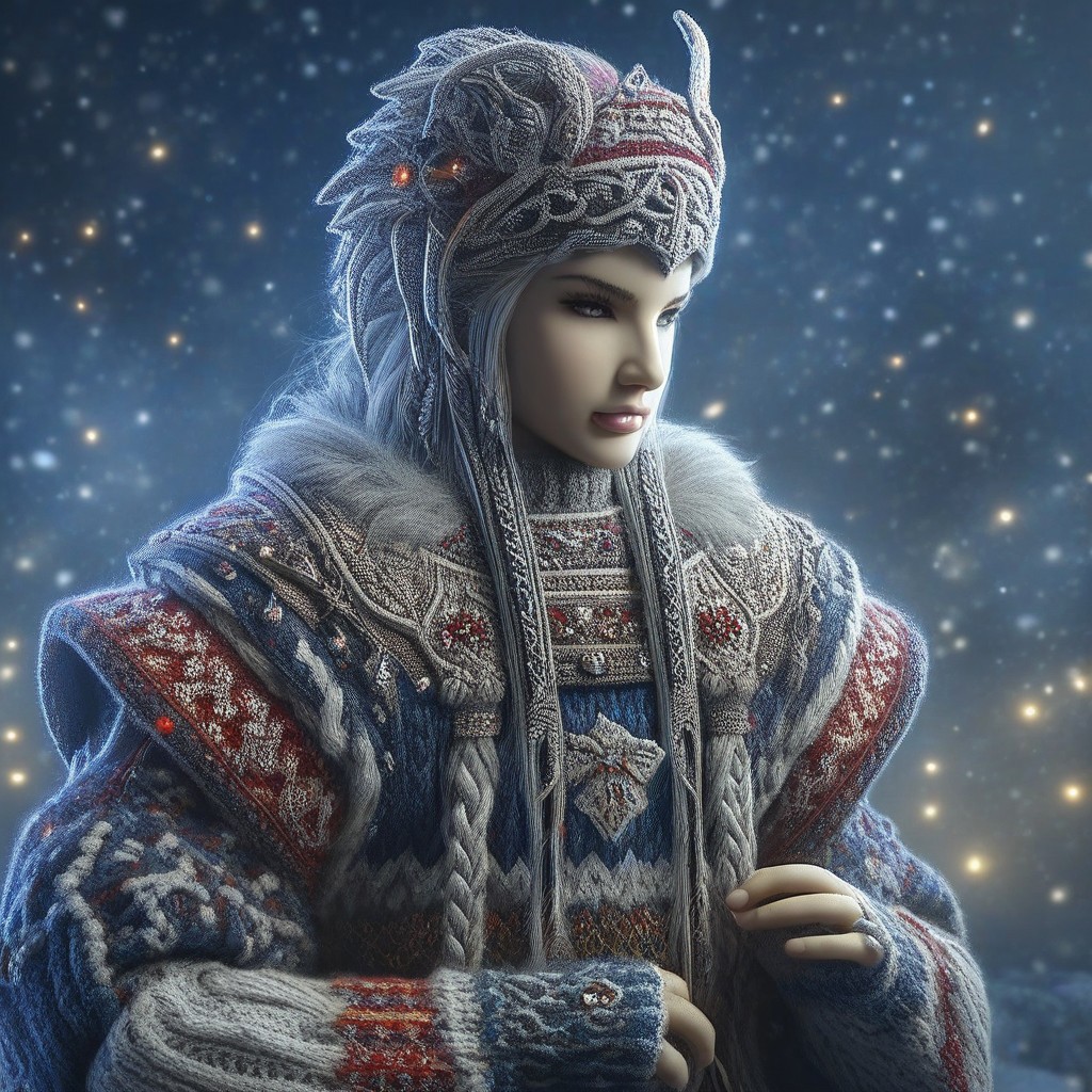 masterpiece, best quality, newest, absurdres, highres, thunderboltfantasy, hIghly detailed photograph, 1girl, standing, portrait, ChristmasSweater, festive lighting, outdoors, smow, sword,