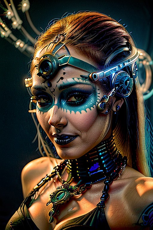 A futuristic humanoid female with glowing blue accents in her skin explores a serene digital garden. The garden is filled with luminous flowers and holographic butterflies, all interacting with her movements. The setting is ethereal, with soft neon lighting and a starry sky in the background. Incorporate glowing or pulsating effects to enhance the futuristic vibe. Stick with a consistent palette, like soft blues and neons, to maintain harmony. smile,