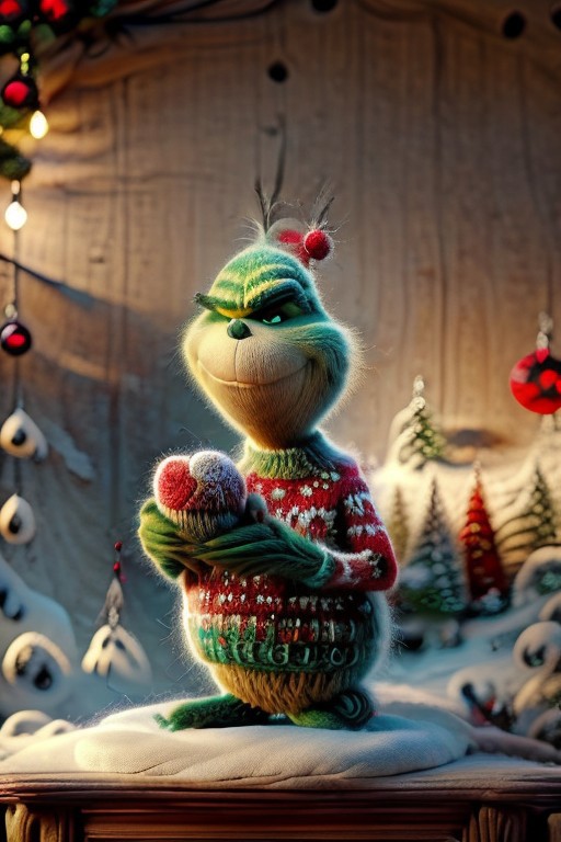 christmassweater, Masterpiece, 1female, detailed, realistic photo, portrait, face focus, close up, European, female, red lips, gentle smile, 28 years old, realistic high detailed face, natural eyes, anatomic correct bodies, lots of detail, colorful, hdr, strong, mature female, beautiful, cinematic, elegant, hyperrealistic, hyperrealism, Christmas sweater, colorful sweater, garden, winter, Christmas tree, Christmas decorations, Christmas, hands hidden, hands out of view, Grinch, animal focus, Santa hat.