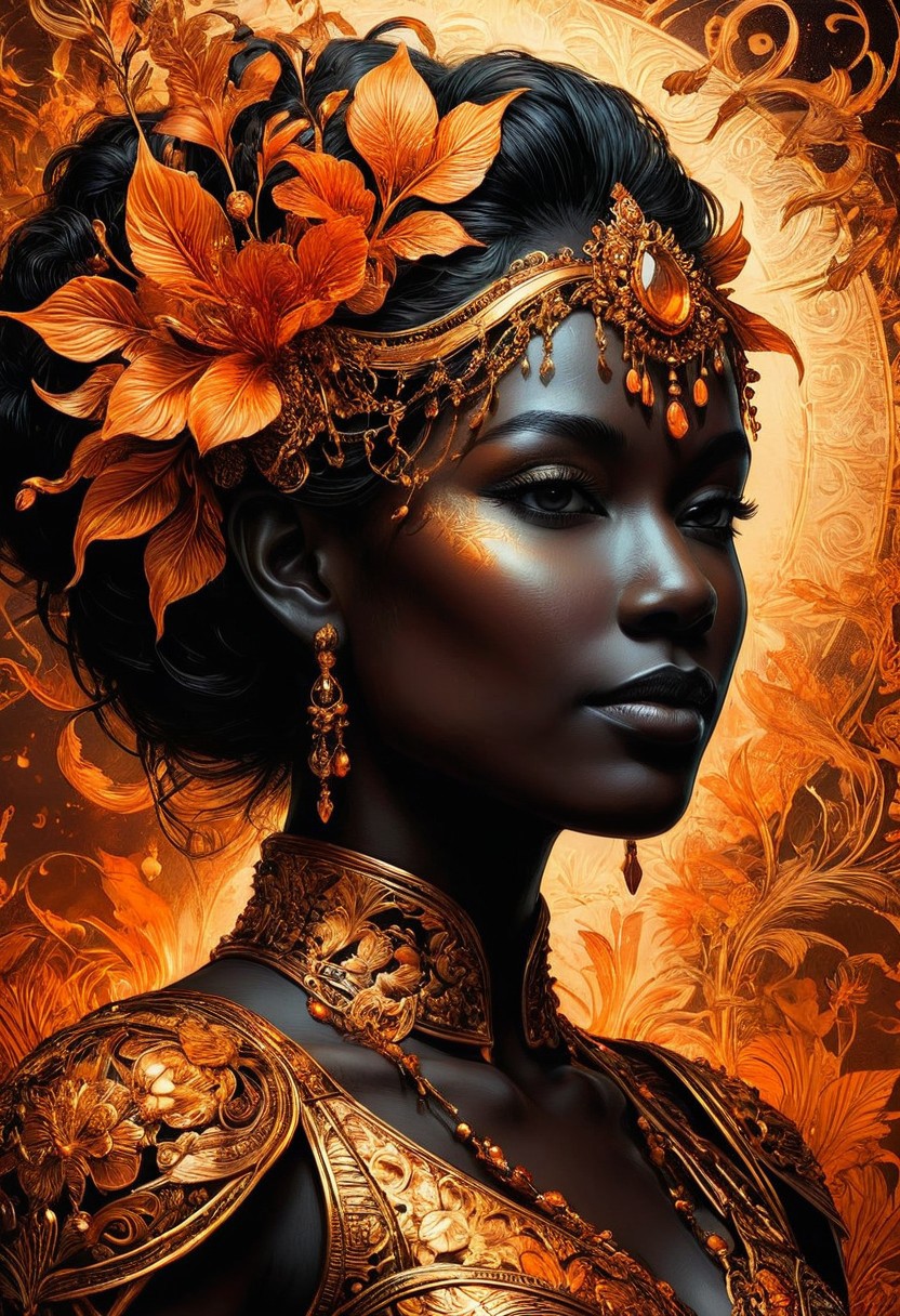 Silhouette Art, breathtaking detailed, masterpiece, lovely, charming, awe-inspiring, radiant, magnificent. (all dark hues and fine vibrant orange glowing smoldering accent and shiny gold color scheme:1.02). glossy. <lora:InkArtXL_1.2:0.4> <lora:FaeTastic:0.35> . award-winning, professional, highly detailed . extremely high-resolution details, photographic, realism pushed to extreme, fine texture, incredibly lifelike, high contrast, well defined .