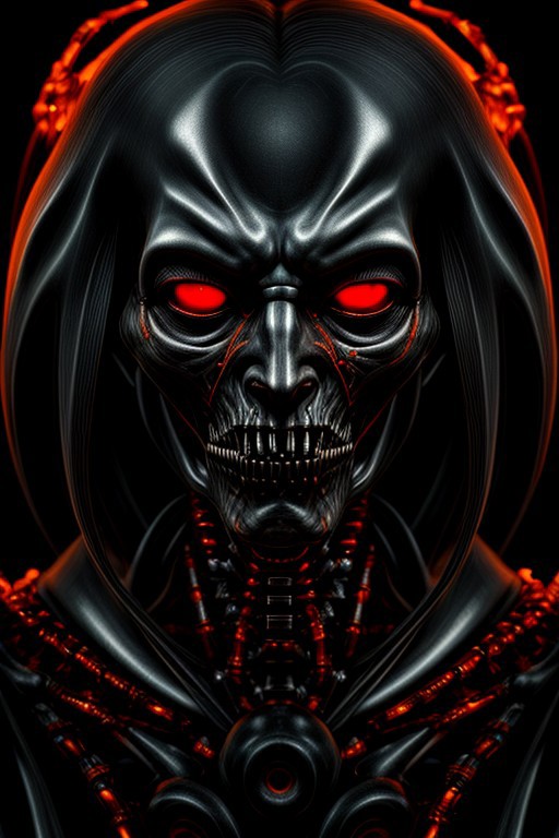 Demon, biomechanical, detailed, portrait, dramatic, cinematic, data mosh, glow,
