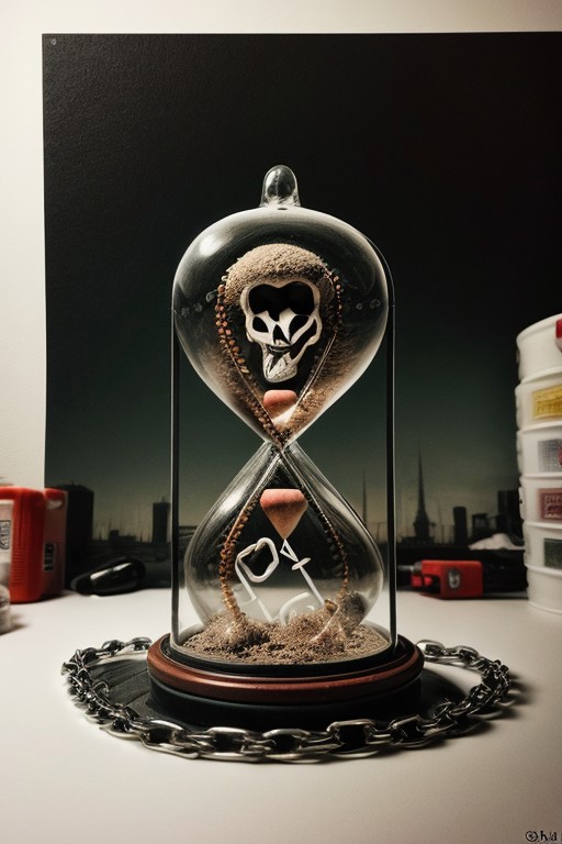 In the foreground: Skull:: DNA:: hourglass, in the background: roots:: wall: chains:: hyper detailed, beautifully color, insane detail, macabre, Ink style, pencil drawing, hyper realistic, spraypaint urban hiphop style, Post Processing, Post-Production, insanely detailed, hypermaximalist, elegant, hyper realistic, super detailed, photography, 64k, HDR
