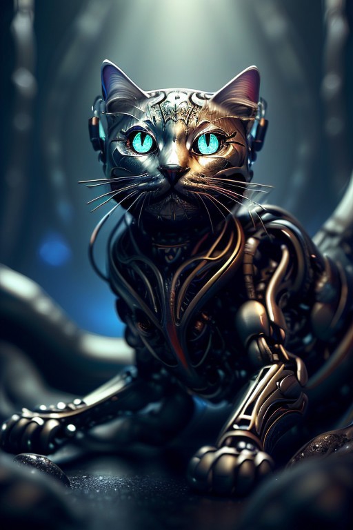 cinematic film still silverpulse, cyborg cat, simple background, high quality, artistic, vibrant colors, detailed textures. futuristic sleek/glossy silver and blue glow, vibrant colors, detailed textures., Concept art, cyborg, background, vintage, modern, SilverPulse, <lora:SilverPulseMorphXL:0.8>, excellent composition, artistic, highly detail, holy, sunny, dynamic dramatic beautiful full taking . shallow depth of field, vignette, highly detailed, high budget, bokeh, cinemascope, moody, epic, gorgeous, powerful, alive,