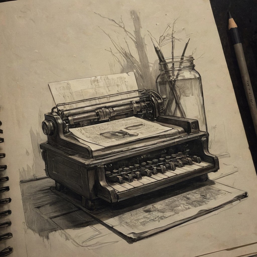 a sketch by By Casey Baugh, a graphic illustration, Sketch in the style of Leonardo da Vinci's sketches of a concept machine, masterpiece, best quality. sketch of a diary on a bedside table, night time, contrast lighting, external lighting creates a subtle illumination effect. Charcoal and crayon on (parchment:1.2) with very fine colored touches, (shadings:1.1), (loose lines:1.2), Schematic, Conceptual, Abstract, (etching:1.2),