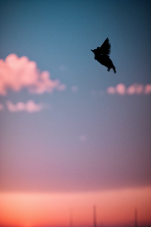 cinematic film still award winning photo .A little black cat with angel wings floating in a sky full of soft pink clouds,shallow depth of field, vignette, highly detailed, high budget, bokeh, cinemascope, moody, epic, gorgeous, film grain, grainy,anime, cyberpunk, Comic book style