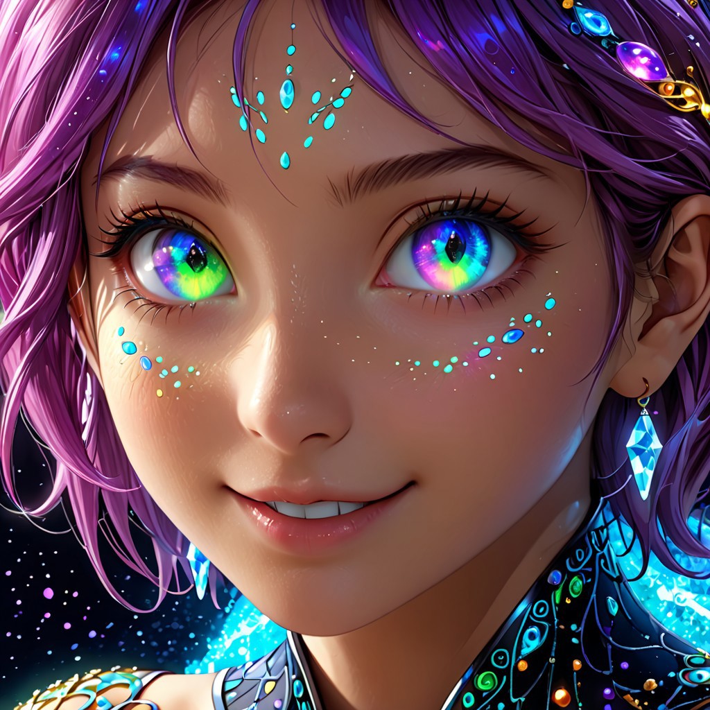 detailed, realistic, 8k uhd, high quality, source anime, illustration, masterpiece, An epic photo of girl<lora:Biolumins v1:0.8>, beautiful smile, glowing eyes, heterochromia eyes, close up,