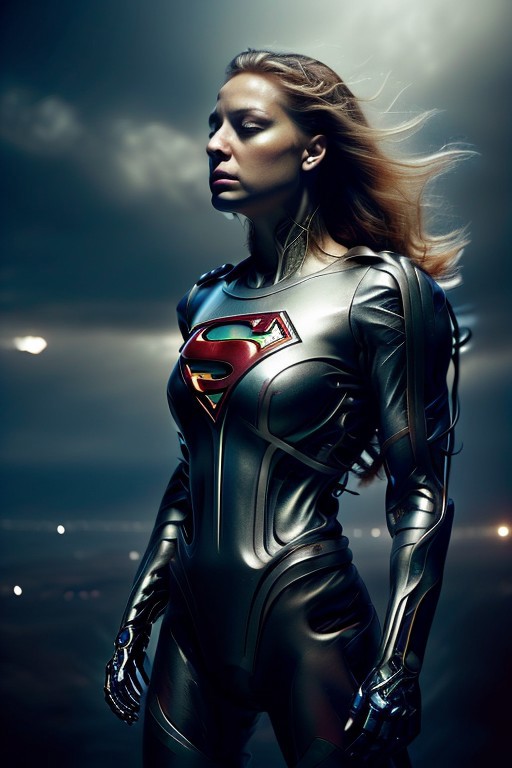 cinematic film still silverpulse, cyborg supergirl, 'S' Logo on chest, red cape, simple background, high quality, artistic, vibrant colors, detailed textures. futuristic sleek/glossy silver and blue glow, vibrant colors, detailed textures., Concept art, cyborg, background, vintage, modern, SilverPulse, superman_oc, <lora:SilverPulseMorphXL:0.8>, excellent composition, artistic, highly detail, holy, sunny, dynamic dramatic beautiful full taking . shallow depth of field, vignette, highly detailed, high budget, bokeh, cinemascope, moody, epic, gorgeous, film grain, grainy, side view,