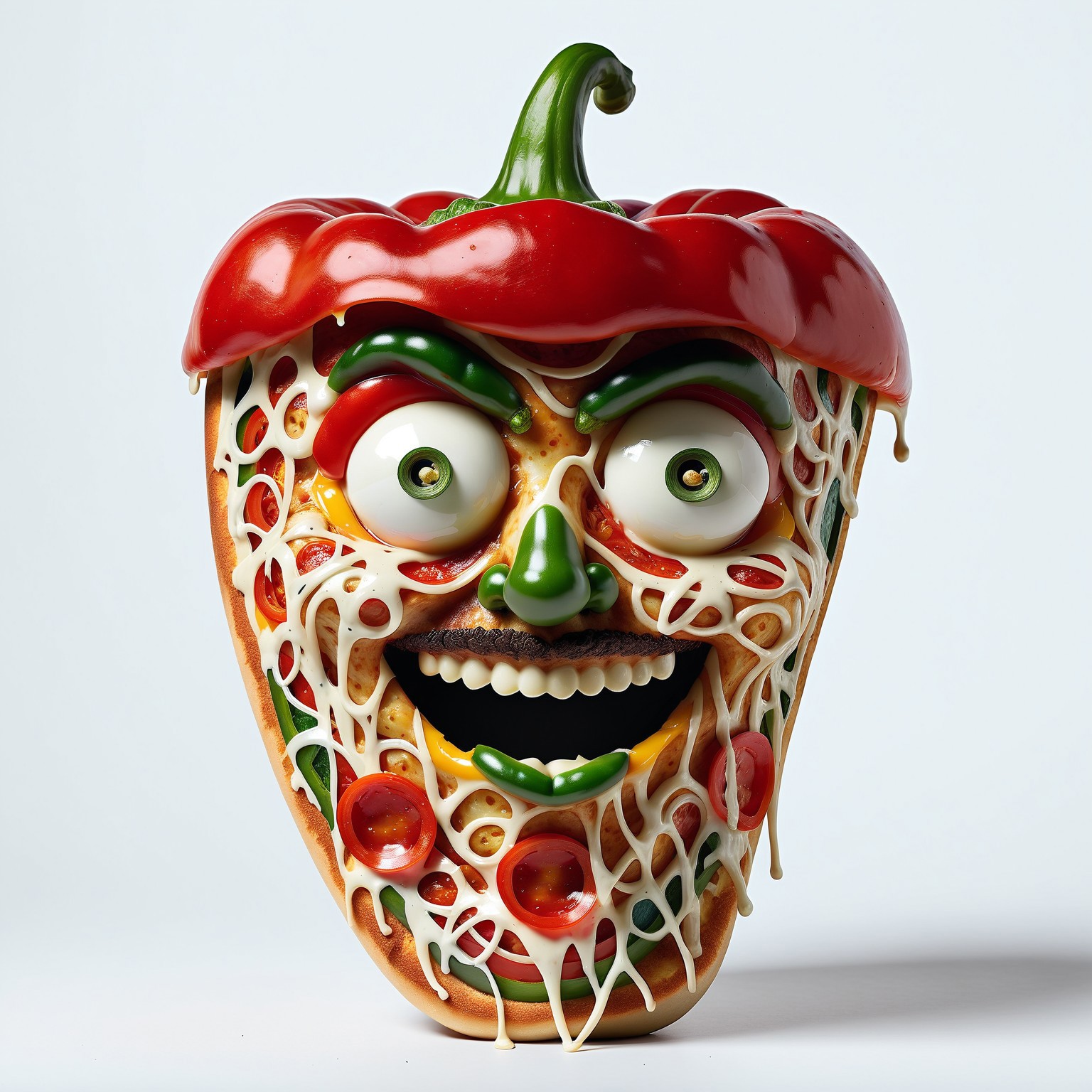 pizzasdx bell pepper with a face, front view, looking at viewer, grin, beret, holding paintbrush, inside gallery