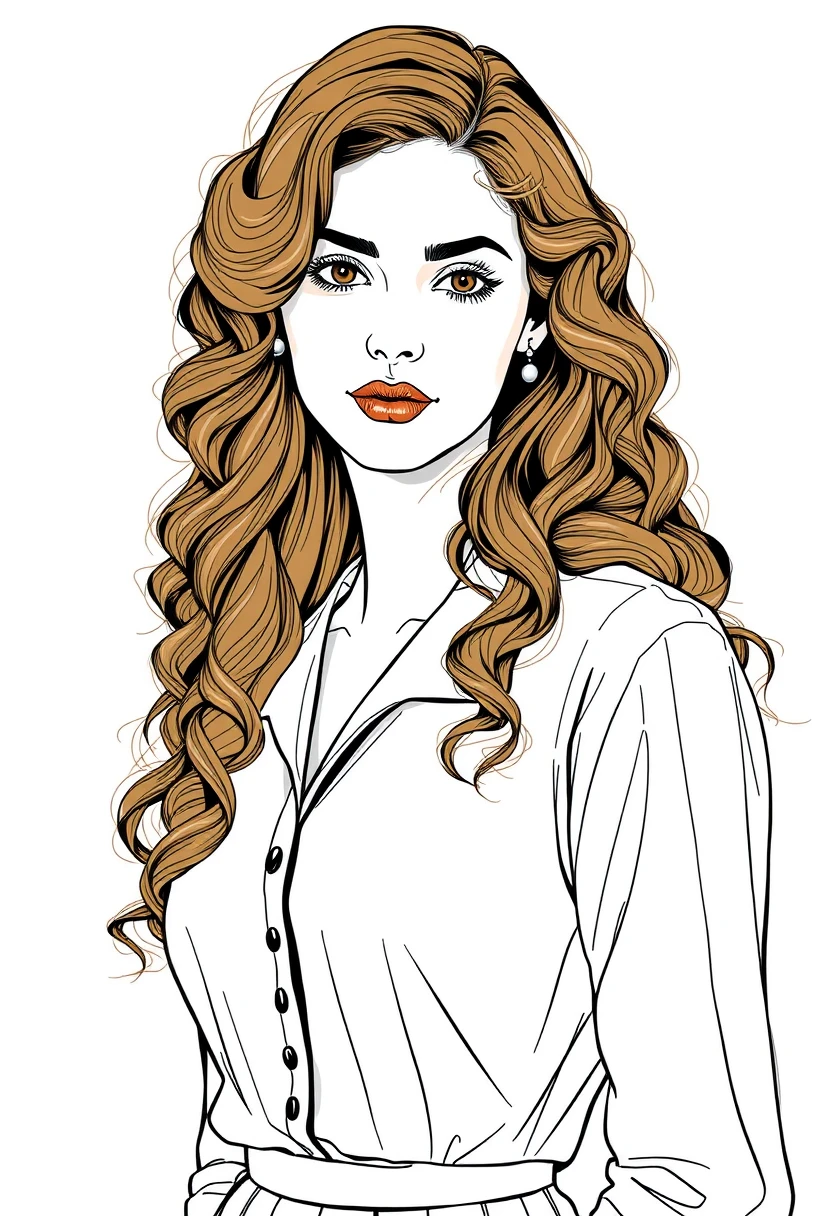 In the Art Style of "Wireframe Drawing", full figure, thick lines, thickness, dashed lines style, a lovely woman, she is from the early 20th century America, her long hair is brown and curly, her eyes are brown, her skin tone is pale, she wears clothes of the upper class in 1930s Ohio, she is wealthy, her family was not affected by the depression and her clothes reflect this continued wealth,