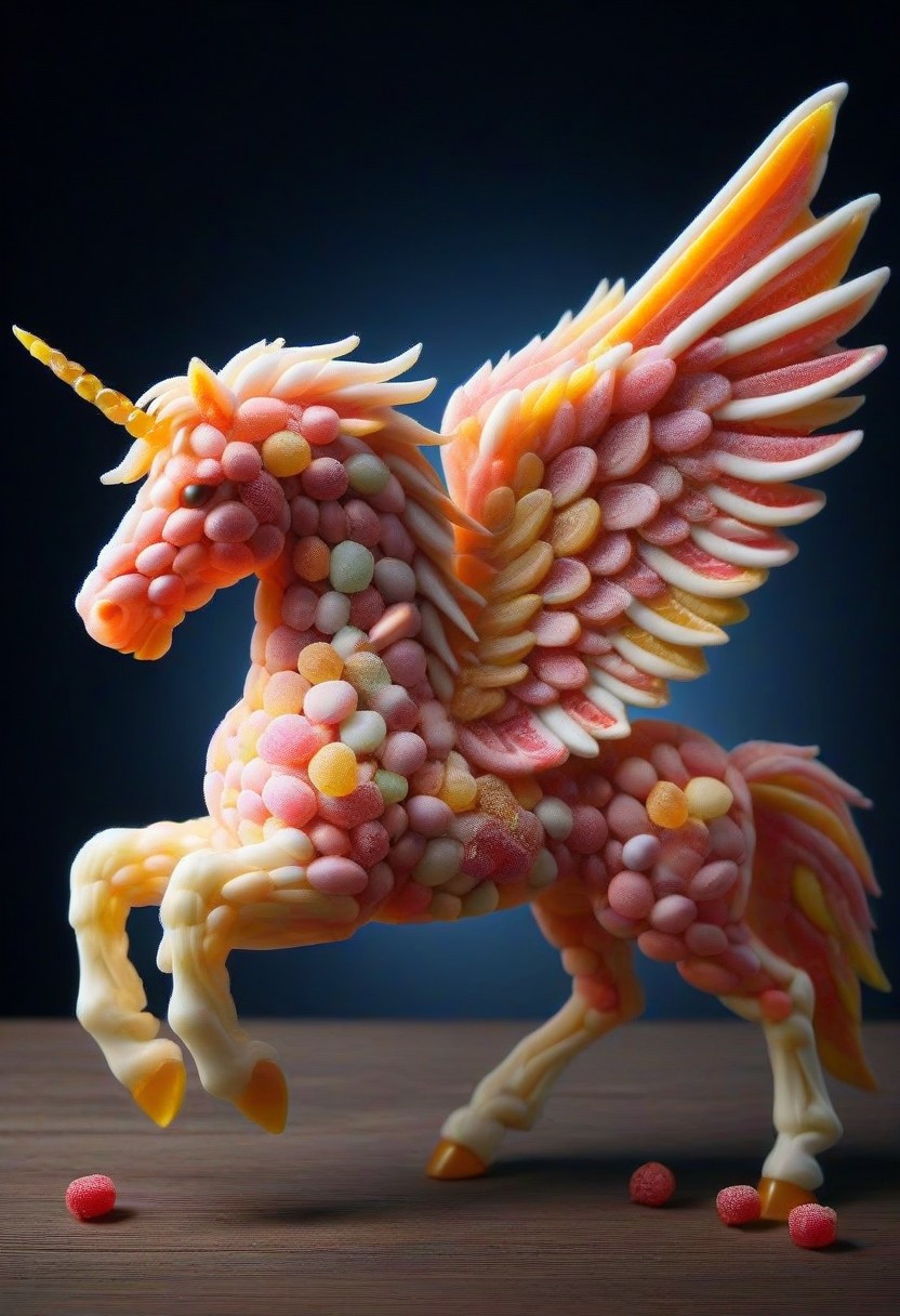 a horse with wings Pegasus made of candy, candy, masterpiece, best quality, highly detailed, sharp focus, dynamic lighting