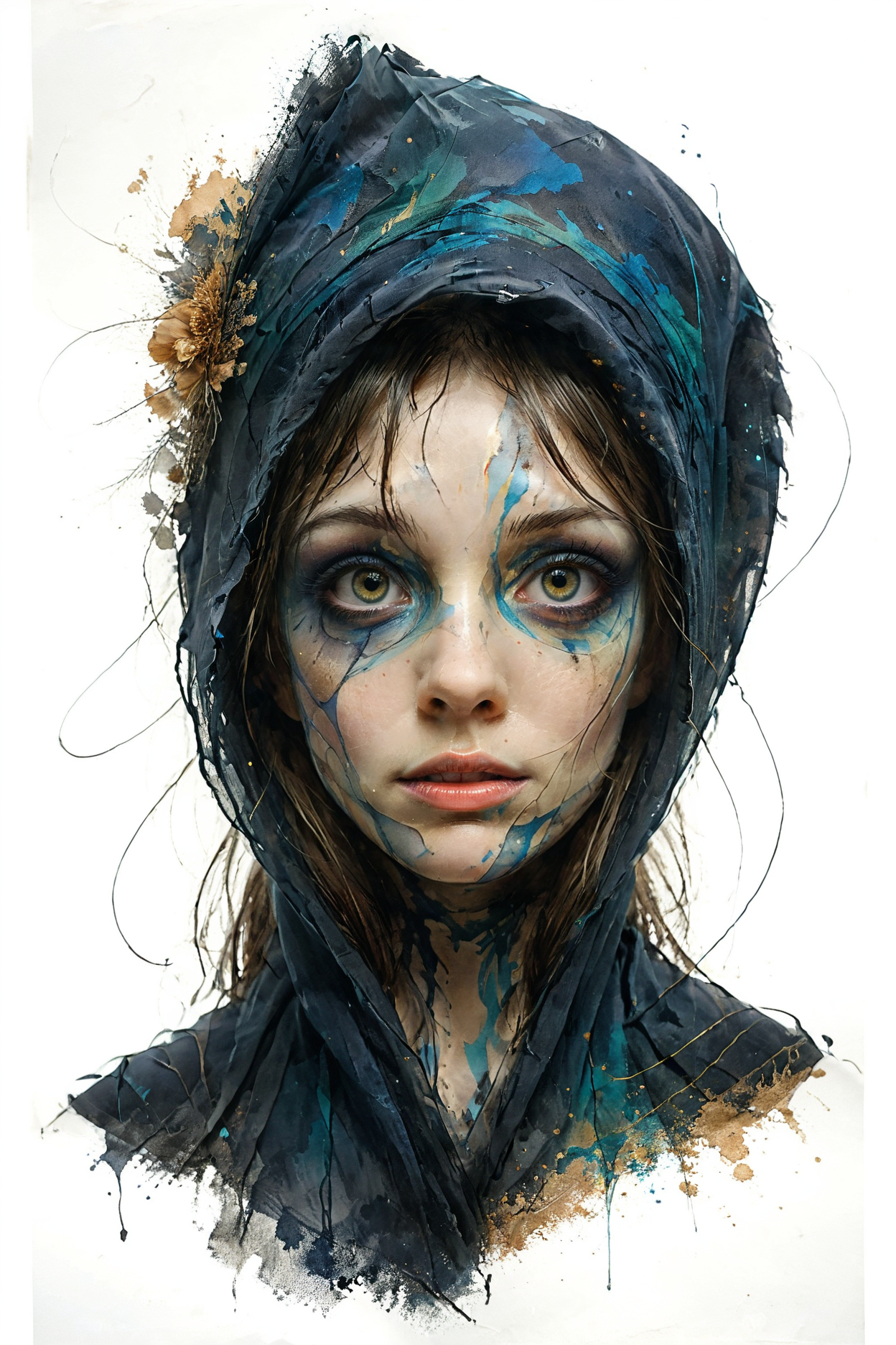 mysterious silhouette woman with veil, by Minjae Lee, Carne Griffiths, Emily Kell, Steve McCurry, Geoffroy Thoorens, Aaron Horkey, Jordan Grimmer, Greg Rutkowski, amazing depth, double exposure, surreal, geometric patterns, intricately detailed, bokeh, perfect balanced, deep fine borders, artistic photorealism , smooth, great masterwork by head of prompt engineering <lora:add-detail-xl:2> <lora:Double_Exposure:0.5> <lora:xl_shuimo:0.8> ink wash painting <lora:Cute_Drawing:0.6> <lora:hyperkraximalism_v1-1:0.3>