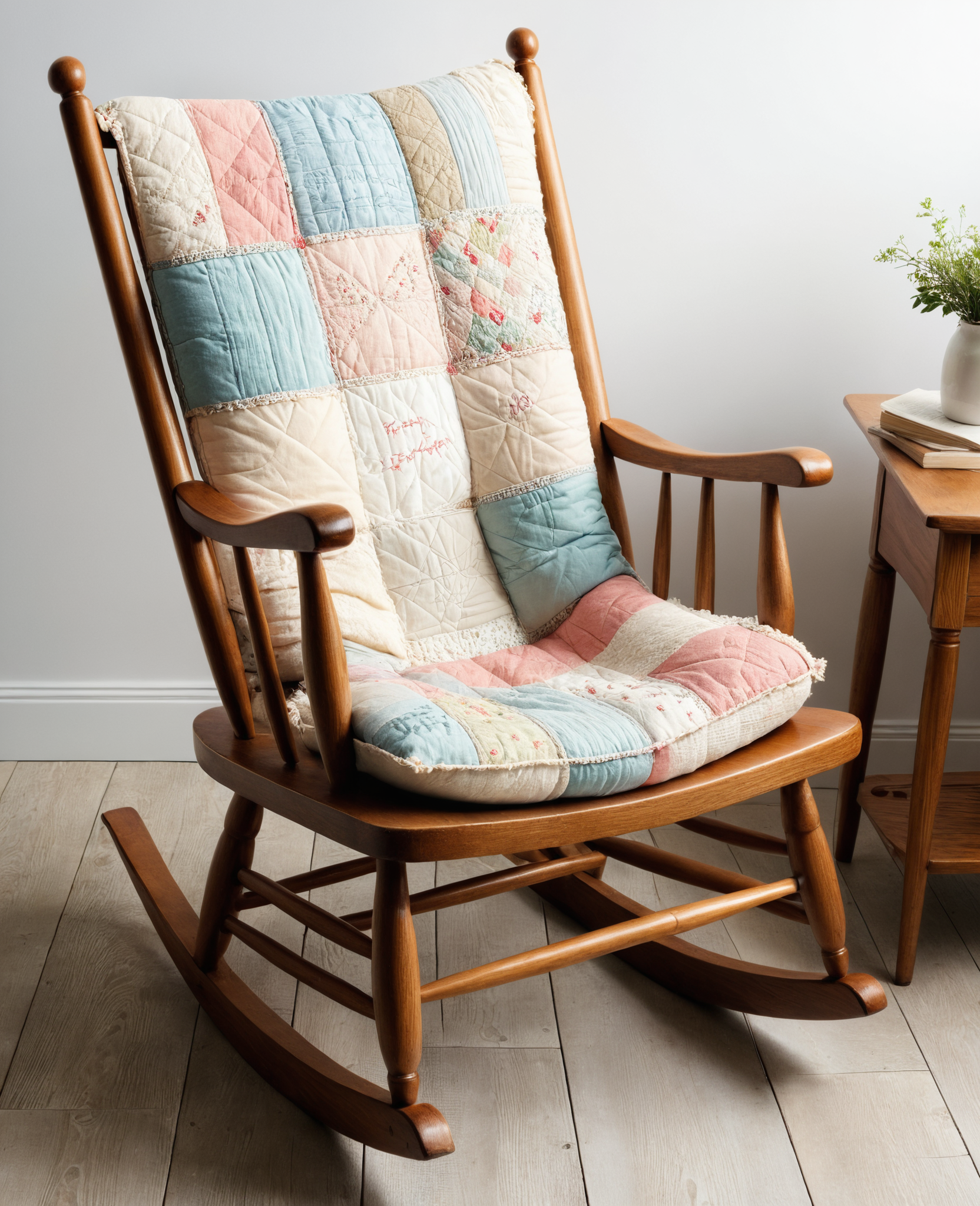 A faded, patchwork quilt lies draped across the back of a well-loved rocking chair, its soft fabric bearing the stitched signatures of generations past. The gentle creaking of the chair's wooden runners fills the room, a soothing lullaby that echoes the comforting embraces and whispered stories of yesteryear. <lora:grainy-v1:0.5> <lora:xl_more_art-full_v1:0.5>