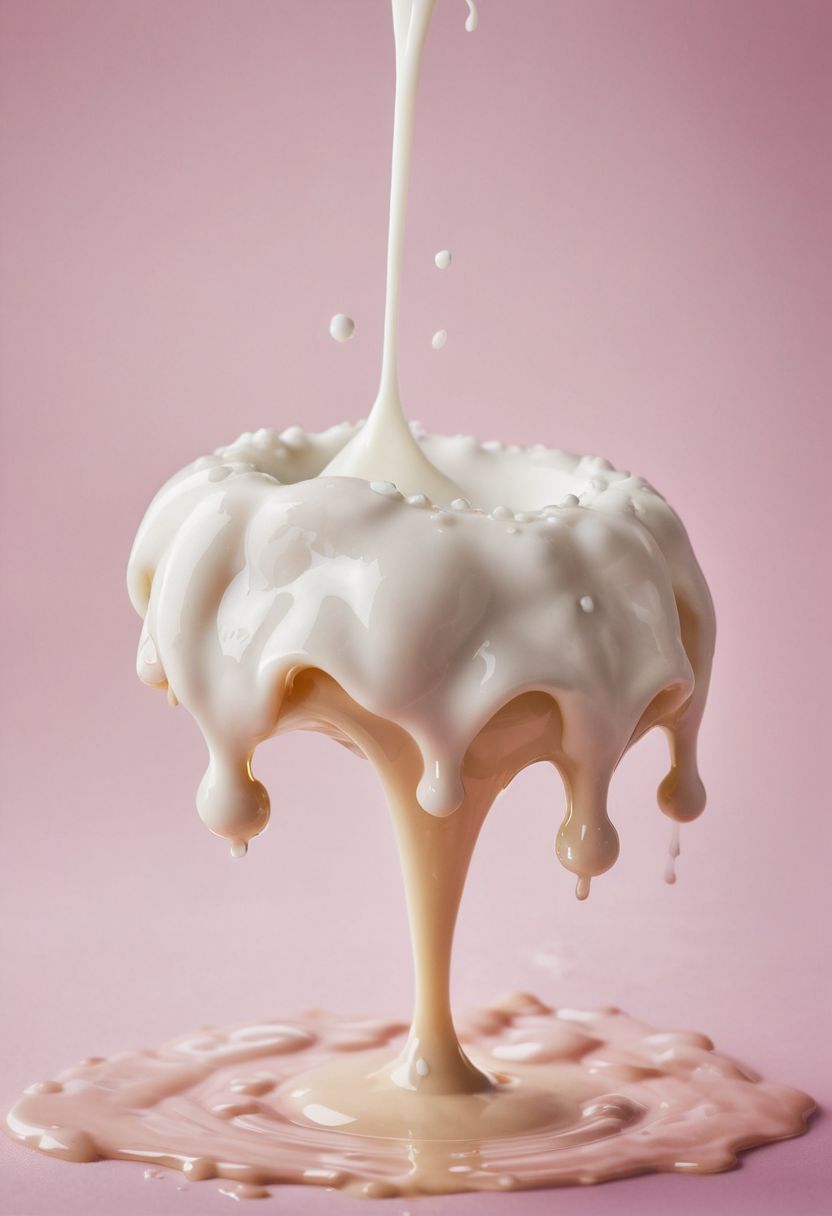 a macro photograph, inspired by Marilyn Bendell, rococo, milk dribble, milk dripping