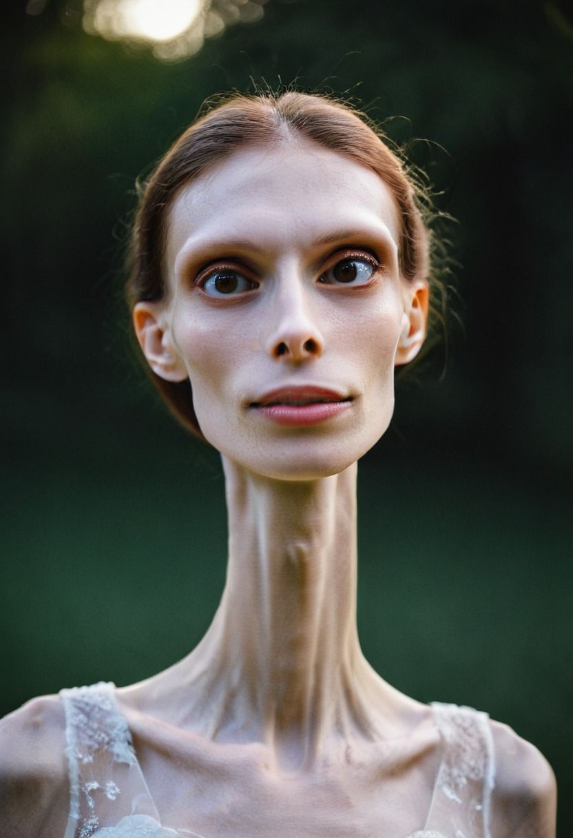 1girl posing for wedding photo (long-neck:1.4) wearing thick-bifocals:1.2