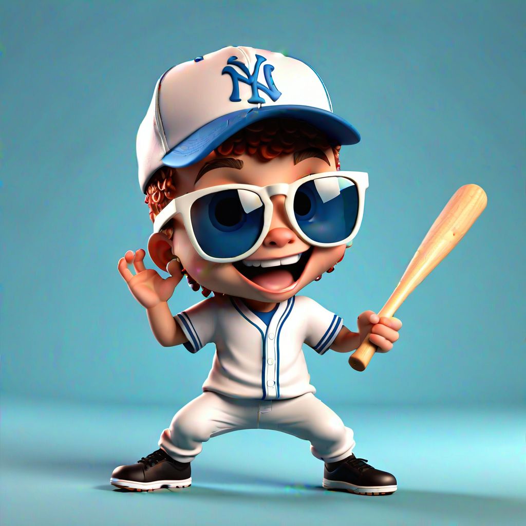 Full body, luxurious sunglasses and baseball cap, excited and happy expression, break dance moves in baseball uniform, cute and lovely baby octopus holding a baseball bat in one hand, various movements, 2D cute, happy, fantastic, stylish and dreamy Disney animation. It's illustration-focused, 3D-focused, and has a professional feel. Soft, modern and cool. Graphics, background is white.