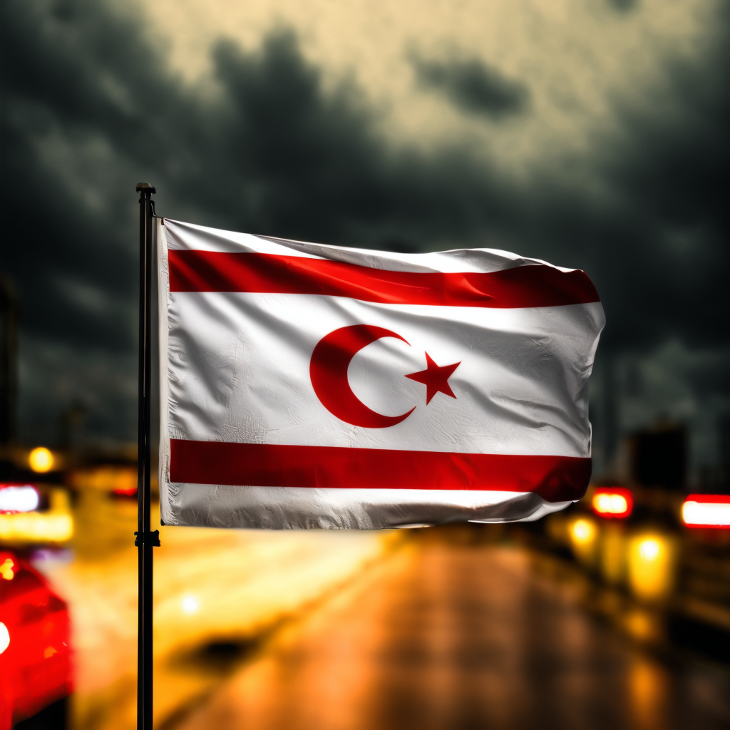 the NorthernCyprus flag,NorthernCyprusFlag,Hyperrealistic,Hyperdetailed,realistic,masterpiece,best quality,ultra realistic,High Detail,<lora:AsiaFlags01-000002:1>,Cinematic Lighting,in winter,rain,rainy days,cloudy,city,cityscape,street,
