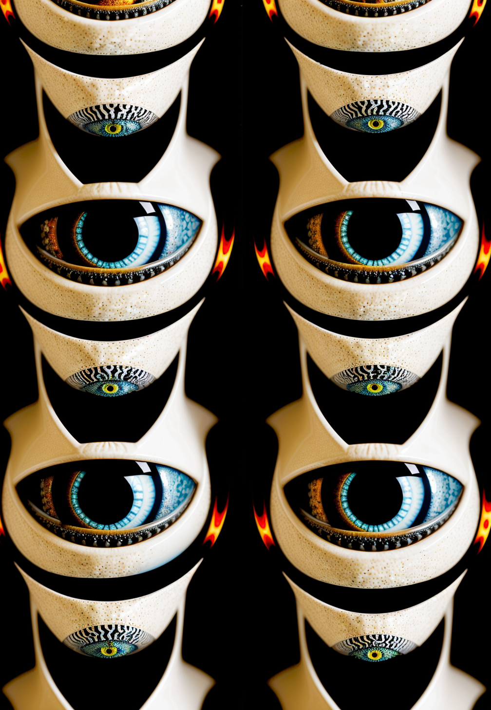 four stacked heads merged together vertically, (((beautiful eyeball in open mouth))), high contrast ink stencil, black and yellow, semi-realistic, graphic novel, ((fractal geometry)), sacred geometry, fibbonacci sequence, holy image, made of porcelain that looks like melting wax, 8k, IMAX camera, depth of field, dust particles, volumetric lighting, hyperrealism, (((extreme texture detail))), f/8, iso 100, masterpiece photograph, caustics, refraction, subsurface scattering, HDR, indistinguishable from reality, mastercraft, professional lighting, minute details, pores, scratches and imperfections, high bit shado depth,
