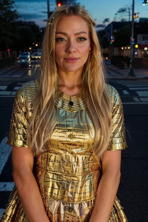 <lora:Cherry_Healey:1> masterpiece, best quality, detailed face, 1girl, solo, realistic, c1873h, long blonde_hair, cleopatra costume , crosswalk , night