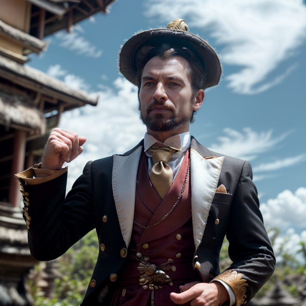 ultracorpsactionman person, still film, professional photography, high resolution, 4k, photo by Sacha Goldberger, <lora:ultracorpsactionman_44100:1> <lora:BaliPunkAI:1>